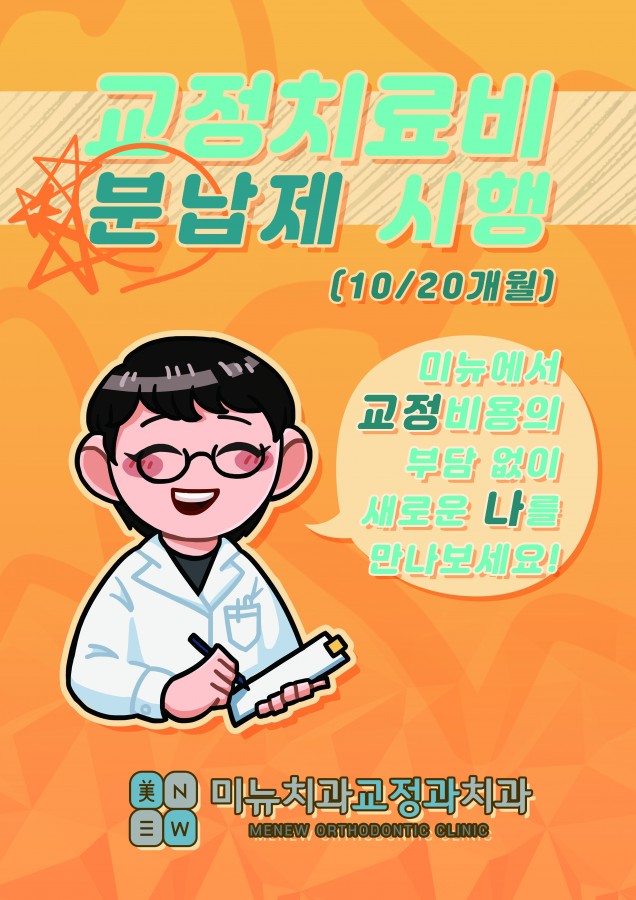 미뉴치과교정과에서는 교정비용 부담없이 진료받을 실 수 있도록 분납제를 시행하고 있습니다.